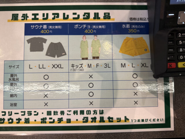 受付をすると、まず珍しいのが「サウナ着」の選択肢。