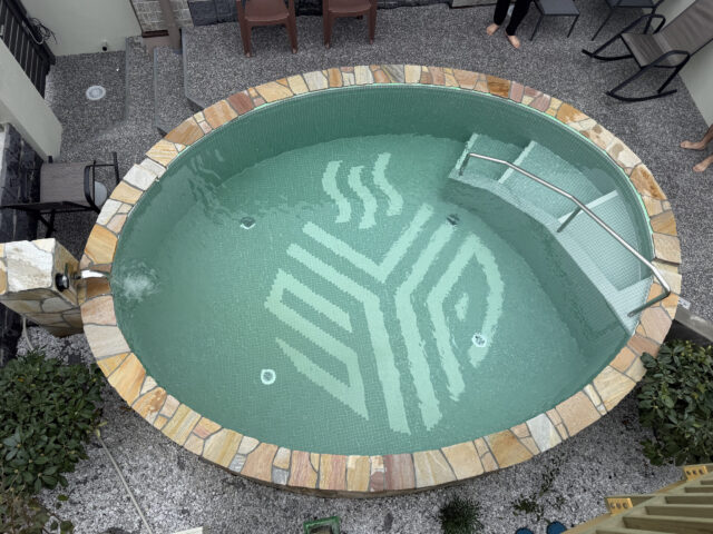 そして、温水プール(30℃)も用意されています。熱すぎず、ずっと入って温まっていられるような温度で気持ちいい。