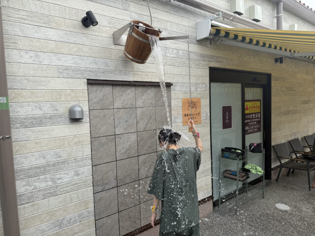 冷水ガッシングシャワーで頭から水を浴び、水風呂へ!