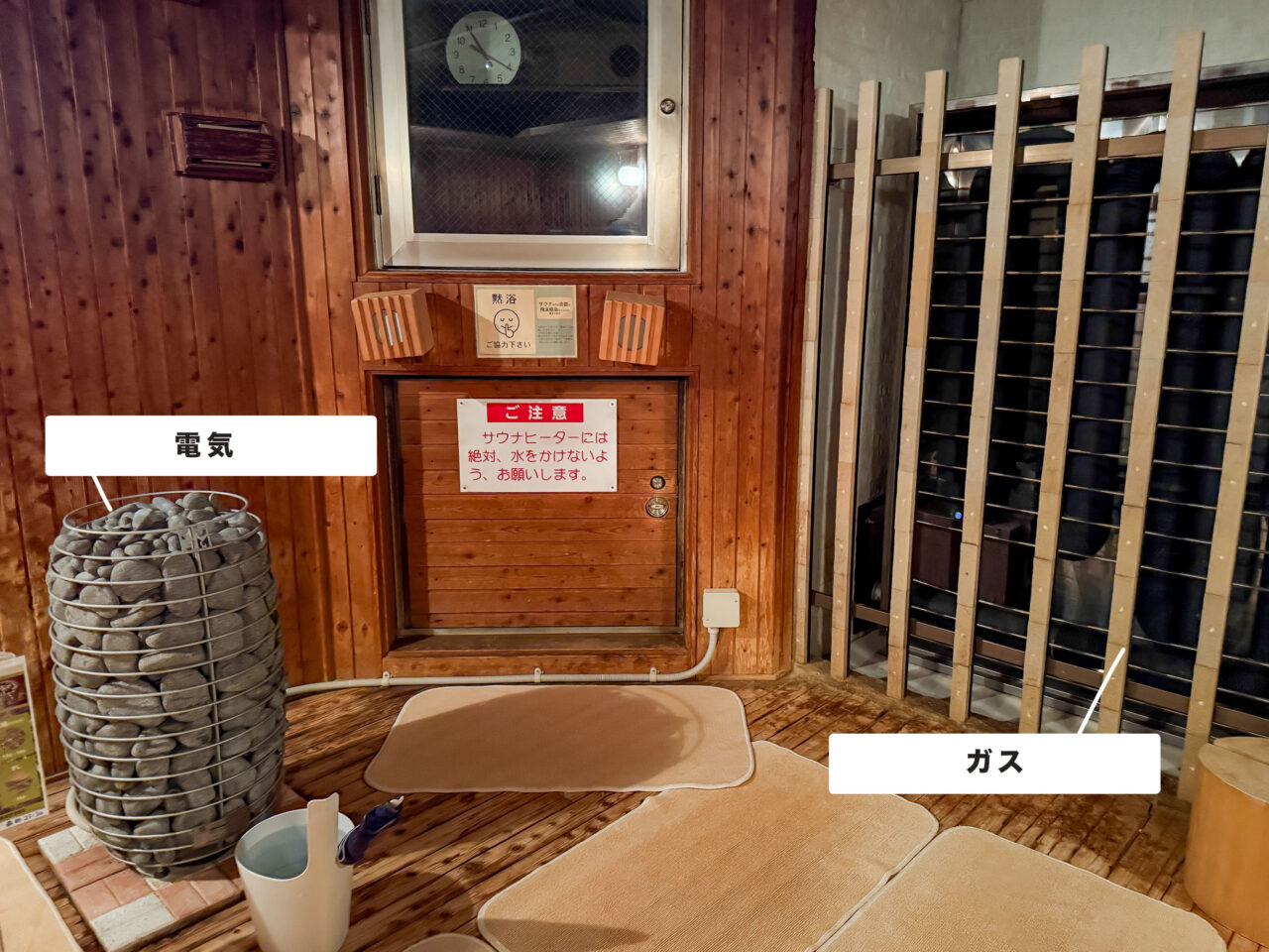 洋風風呂では2種、和風風呂では3種のサウナが完備されています。