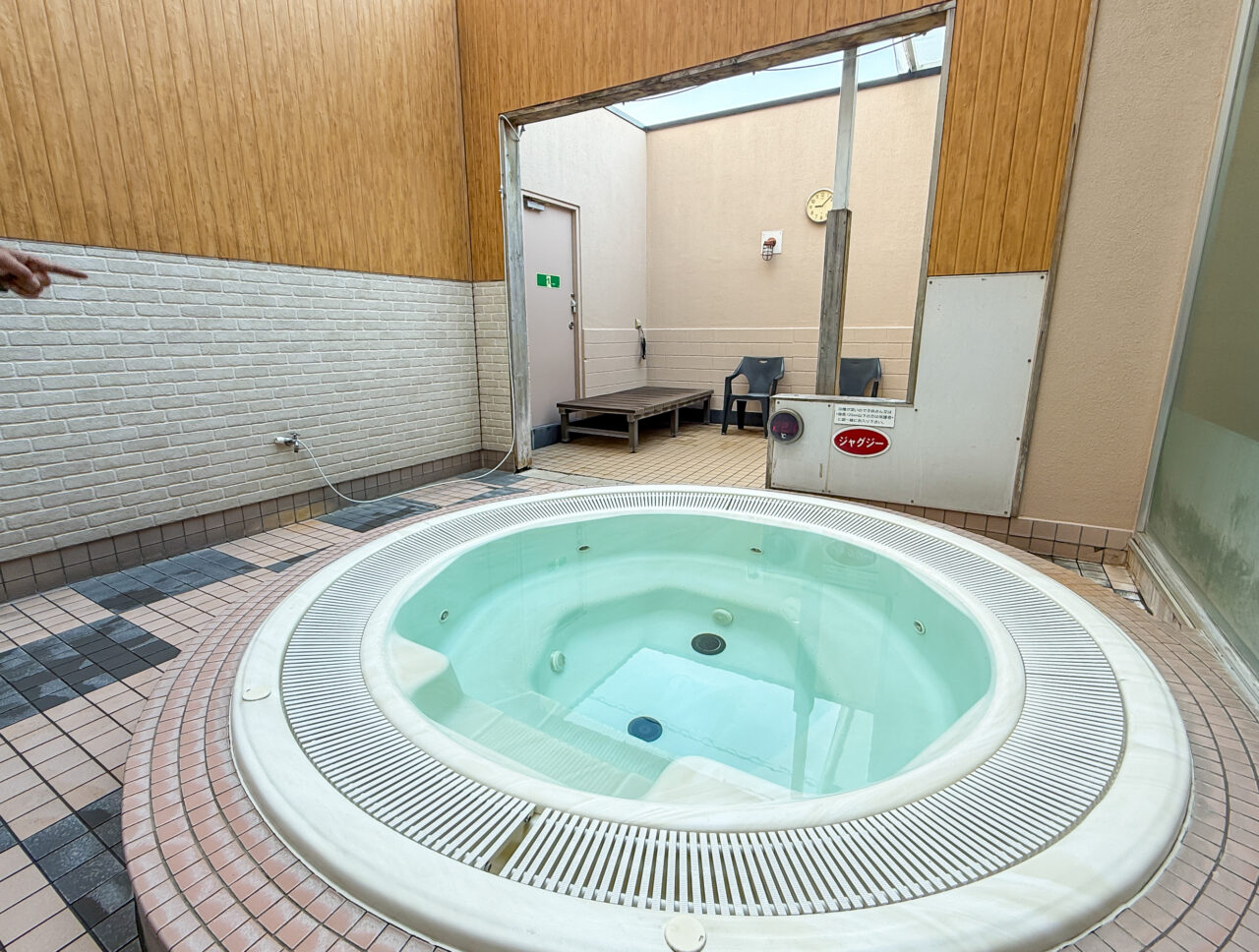 営業時はジャクジーが作動/奥には外気浴スペースもあります!