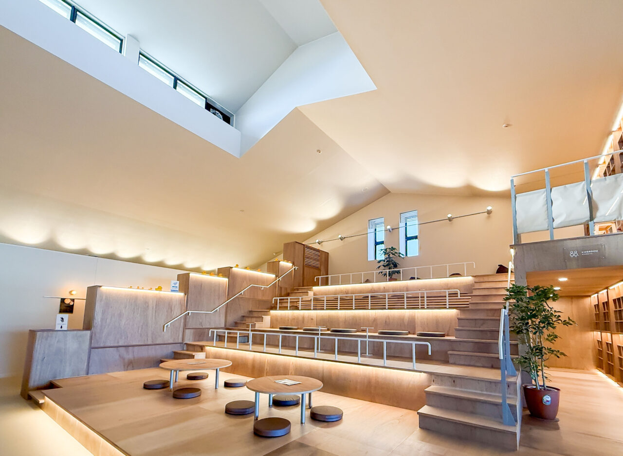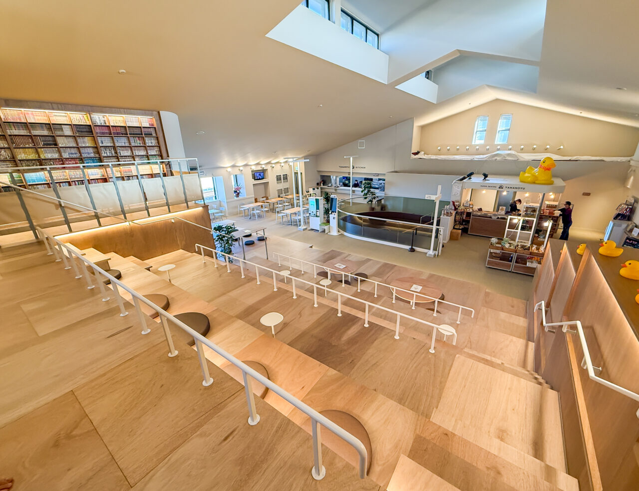 大きく変貌を遂げた2階ロビースペースでひときわ目を引くのが、こちらの大階段スペース!