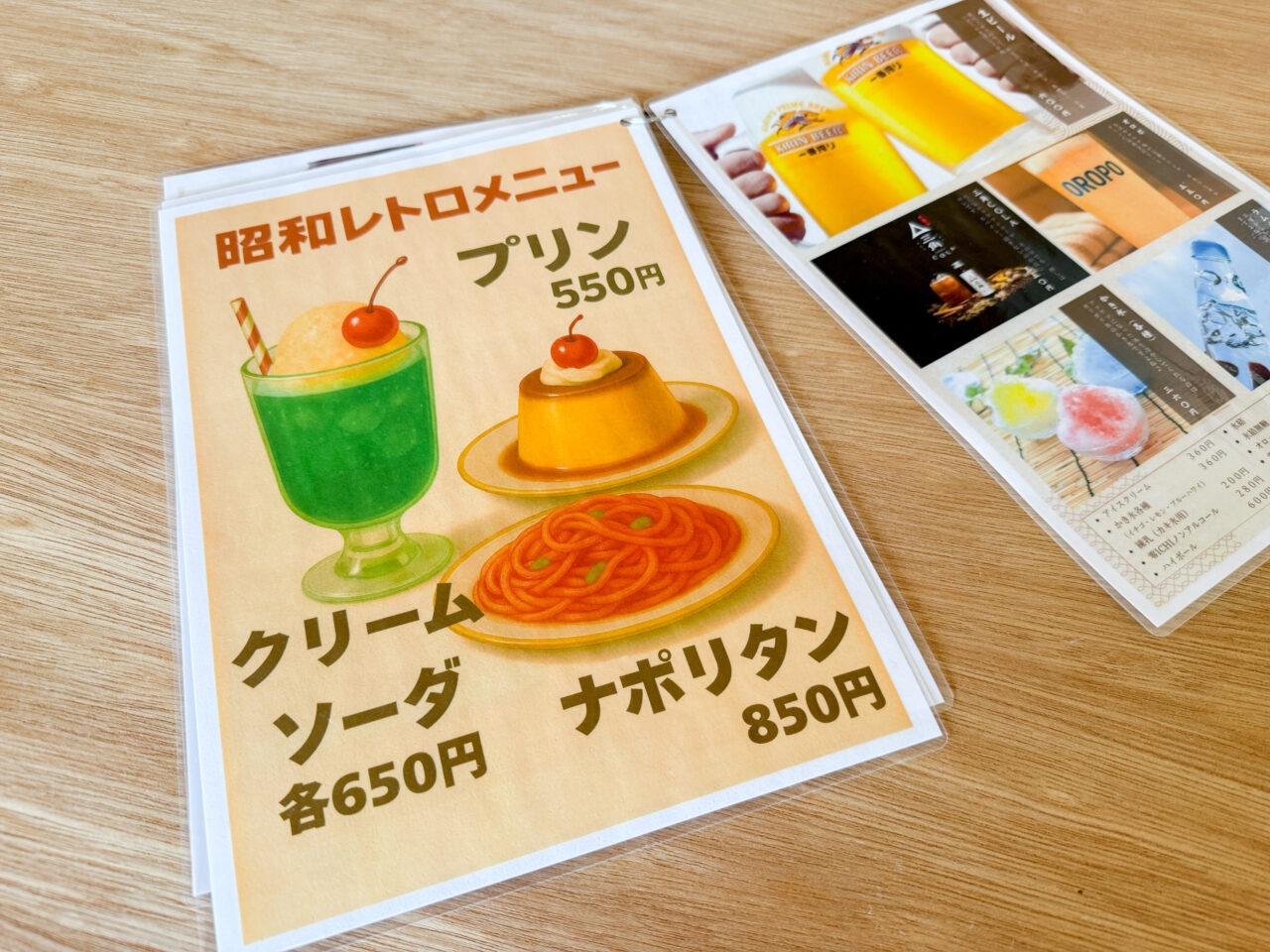 がっつり定食や麺類などのメニューが充実していますが、わたしは山野さんイチオシのレトロ喫茶メニューを注文!