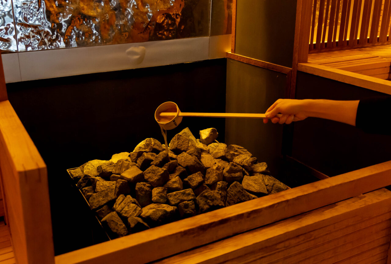 精油を使用したオリジナルアロマのセルフロウリュを楽しんで……