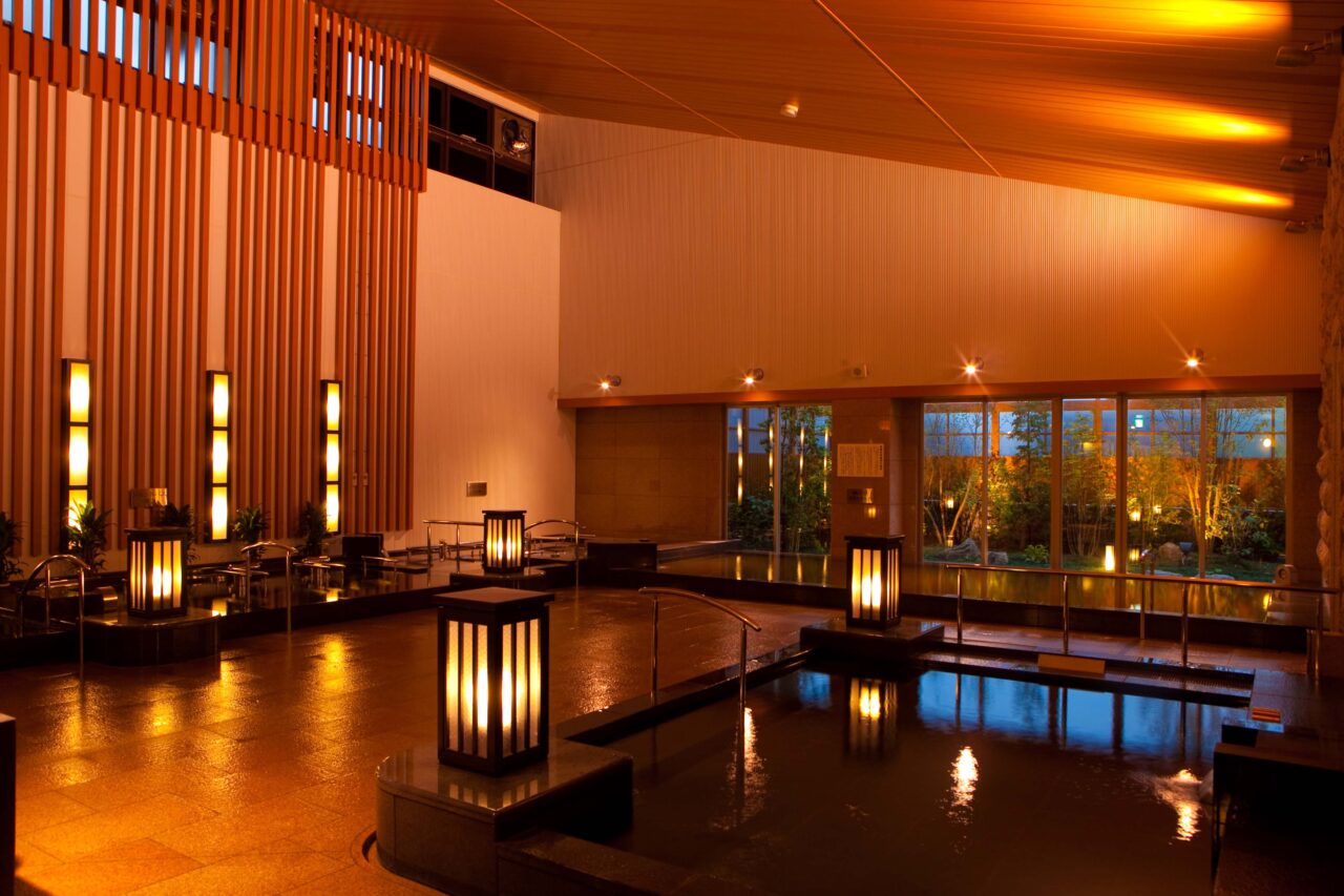 大浴場「大湯」は、「水前寺成趣園」の回遊式庭園をイメージ。